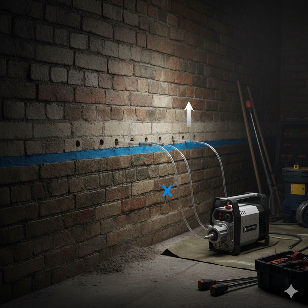 Nachträgliche Horizontalsperren gegen aufsteigende Feuchtigkeit mittels modernster Injektionstechnik.