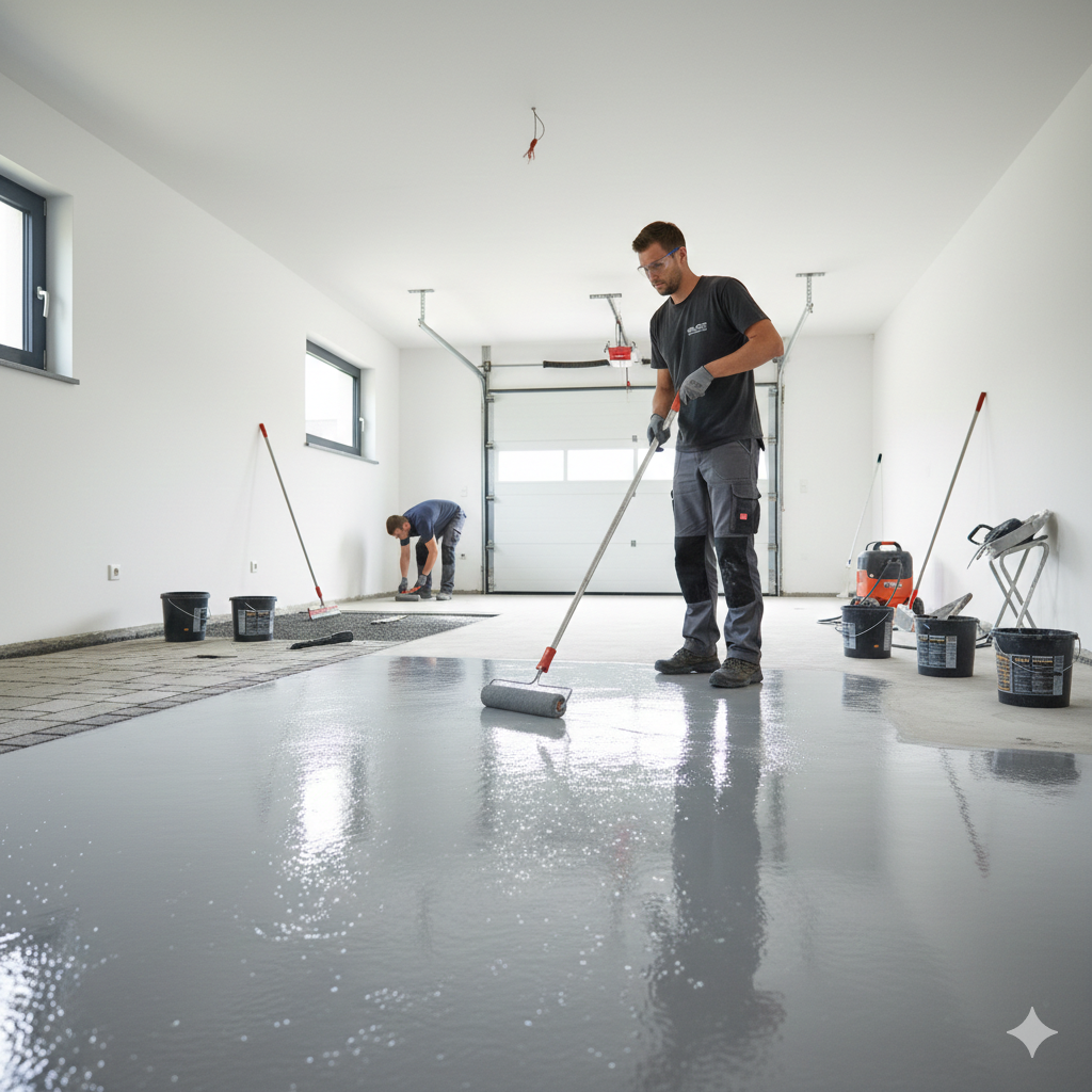 Epoxidharz-Beschichtung für Garagen: Verwandeln Sie Ihren Boden in eine extrem widerstandsfähige, moderne Fläche. Unsere Beschichtung schützt nachhaltig vor Abnutzung, Öl und Feuchtigkeit, ist pflegeleicht und auf Wunsch rutschfest.