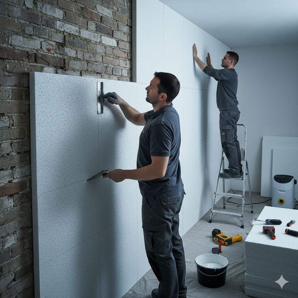 Einsatz von Kalziumsilikatplatten zur natürlichen Feuchtigkeitsregulierung und Schimmelprävention.