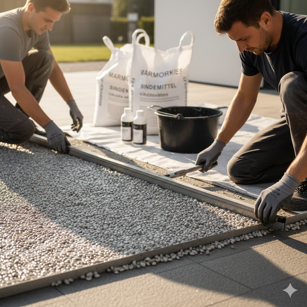 Durch eine Mamorkiesverlegung veredeln wir Ihre Flächen mit einer rutschfesten, frostsicheren Beschichtung. Professionell verlegt und versiegelt – für eine ästhetische Aufwertung, die Schmutz und Witterung dauerhaft trotzt.